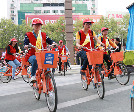 4月14日,南湖區(qū)文明辦在八佰伴廣場(chǎng)組織開展“七大文明行動(dòng)”系列活動(dòng)。公共自行車公司積極參與,調(diào)運(yùn)了50輛公共自行車助力“七大文明行動(dòng)”系列活動(dòng)啟動(dòng),50位身穿紅色馬甲的文明志愿者騎著插有“迎接G20 人人講文明”的小旗子的公共自行車騎行在禾城街頭,倡導(dǎo)文明出行,提升廣大市民的文明素質(zhì),提高社會(huì)文明程度。