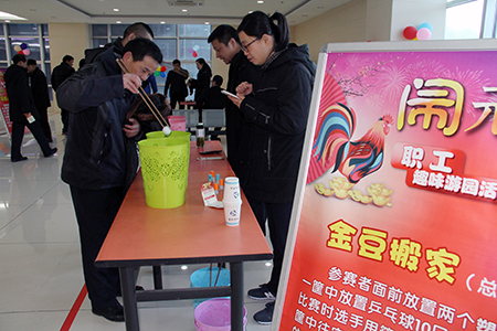 活動從2月8日到11日持續4天,共設置了“趕雞入欄、迷你投籃、飛鏢搶分”等10個娛樂項目。這些活動項目趣味性強、參與門檻低,引起了廣大職工的濃厚興趣,大家摩拳擦掌、躍躍欲試。在“掌聲明珠”活動場地上,選手們手持放有乒乓球的乒乓拍,快速穩健地繞乒乓桌行走;再看“金豆搬家”項目,一個個動作靈活,手法穩準,很快就完成了任務,贏得了高分。活動現場氣氛熱烈,到處充滿了歡聲笑語,爽朗的笑聲一浪高過一浪,不斷將游園活動推向高潮。當大家最后從工作人員手中接過活動獎品時,個個都笑容滿面地說著“開心”和“感謝”。