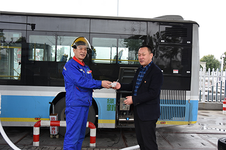 “正好肚子餓了……”一位19路公交車駕駛員邊吃邊露出喜悅的笑容,這是發生在3月2日下午客運中心LNG加氣站溫馨的一幕。