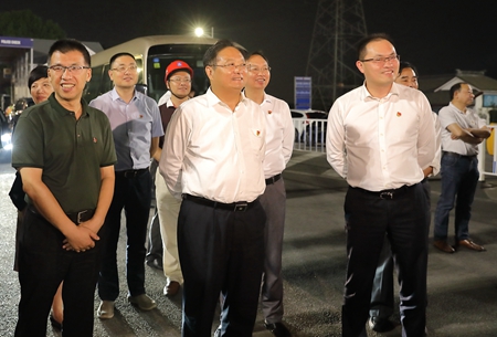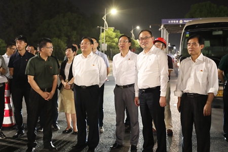 29日晚,洪湖鵬副市長先行赴南湖收費站查看首次亮燈效果,并聽取項目進展匯報。