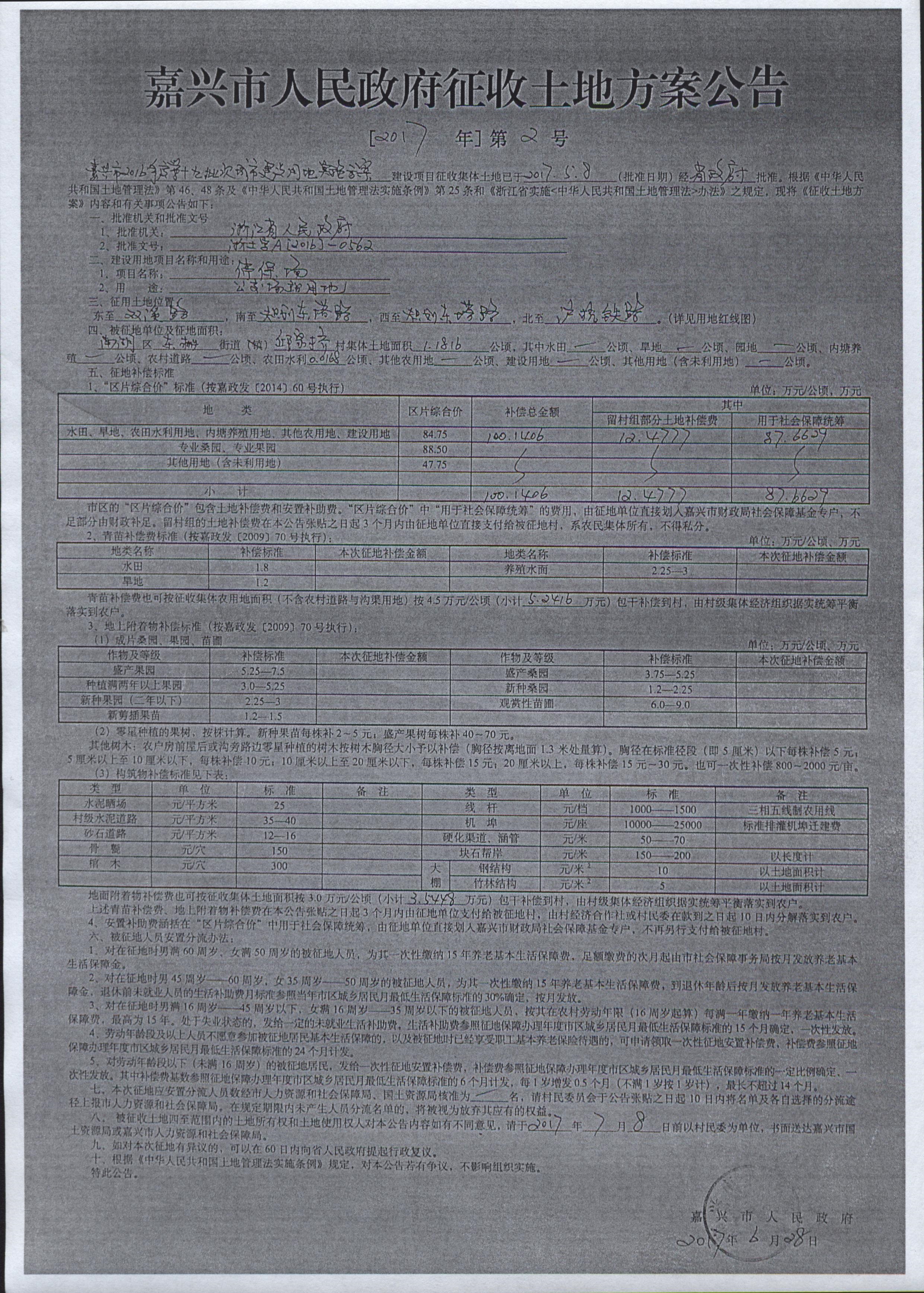 嘉興市城鄉公交雙溪路停保場項目征收土地方案公告